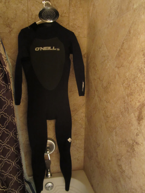 The only problem with Larry the wet suit is that he looks like a headless man when hanging up anywhere. And I never seem to remember where I last put Larry until it's too late.