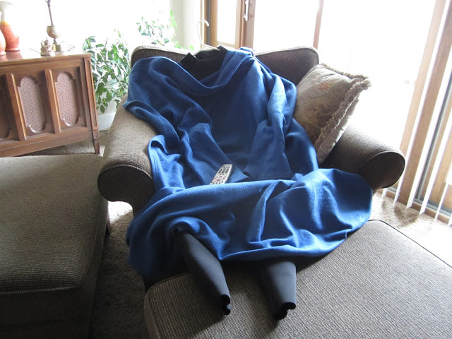 | Larry watching TV in a Snuggie |
