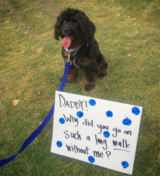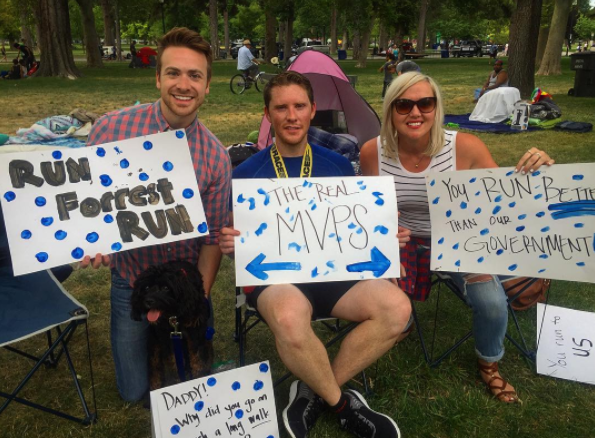I finally turned the last corner to find Bob and Cathie, Caitlyn, Skylar, and Mr. Doodle. The latter three had made signs, at least one of which was a bit self-serving.