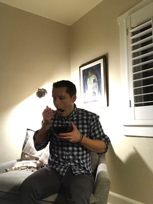 I was asked to bring something so I RACKED my brain over this and finally I came up with the perfect solution. MAC AND CHEESE. Because seriously you guys, this recipe is like SO good. My husband LOVES this recipe. You should see him eating it. He loves it SO much. Here are several really bad photos of him eating it!
