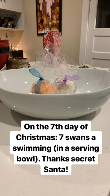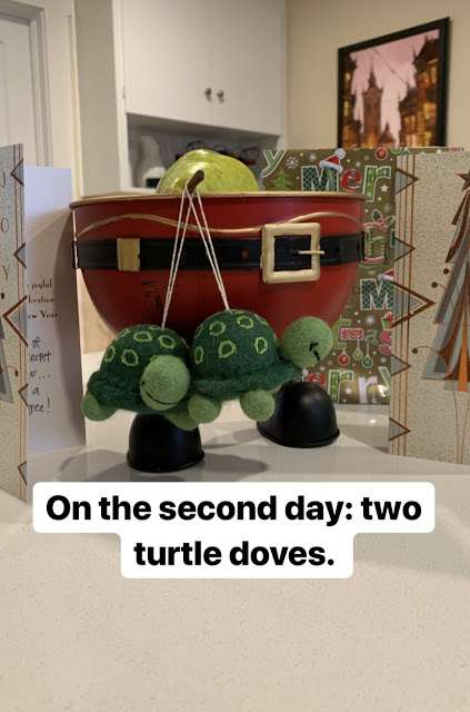 A present suddenly showed up on our front porch on December 1. We opened it, and soon realized that someone was doing the 12 Days of Christmas for us. Gifts anonymously appeared every day for the next week and a half.