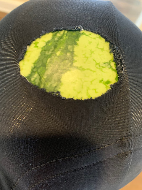 That's obviously not my actual butt. If it was, we would have much more serious problems to talk about than the hole. I put my shorts on a watermelon to demonstrate what it looked like because this is a family show and I don't want to get kicked off the internet.