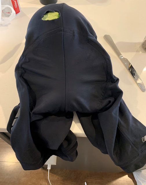 It took me a full 30 seconds to realize that he was trying to tell me that there was a huge hole in the back of my bike shorts that I had been parading around in for the better part of an hour at my sweaty office party.