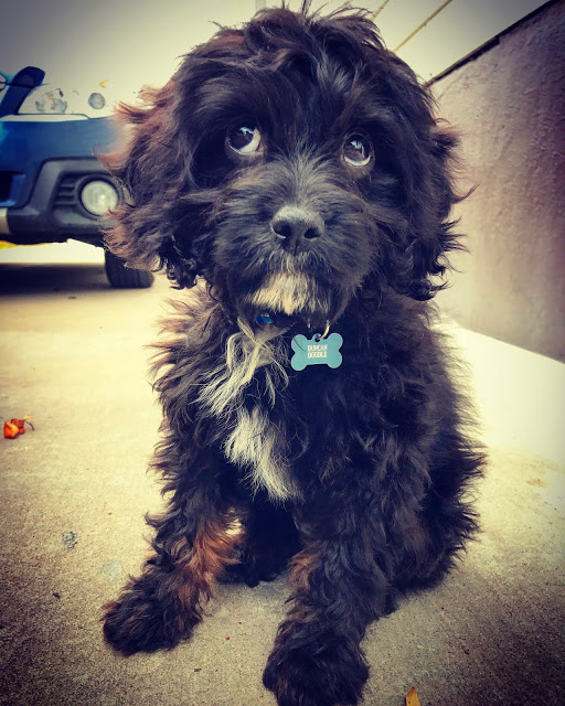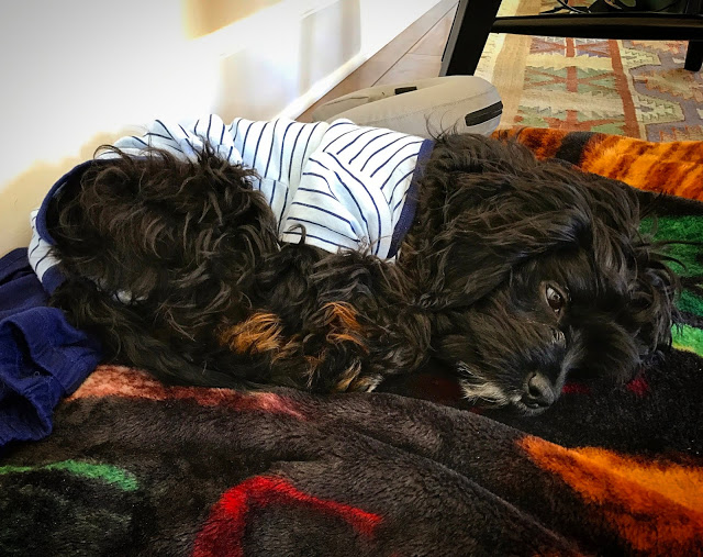 The vet looked at his teeth and assumed he was born in early to mid November 2016. That made Duncan about 12 weeks old at the time, and the absolute perfect size to fit into a baby onesie.