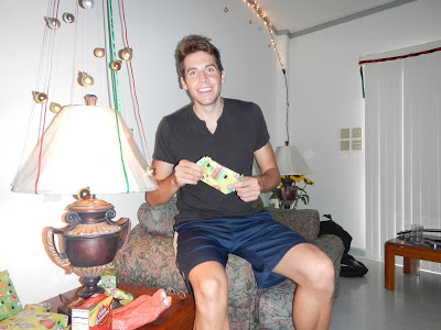 | Daniel, opening another gift from Anna next to the Christmas "tree." |