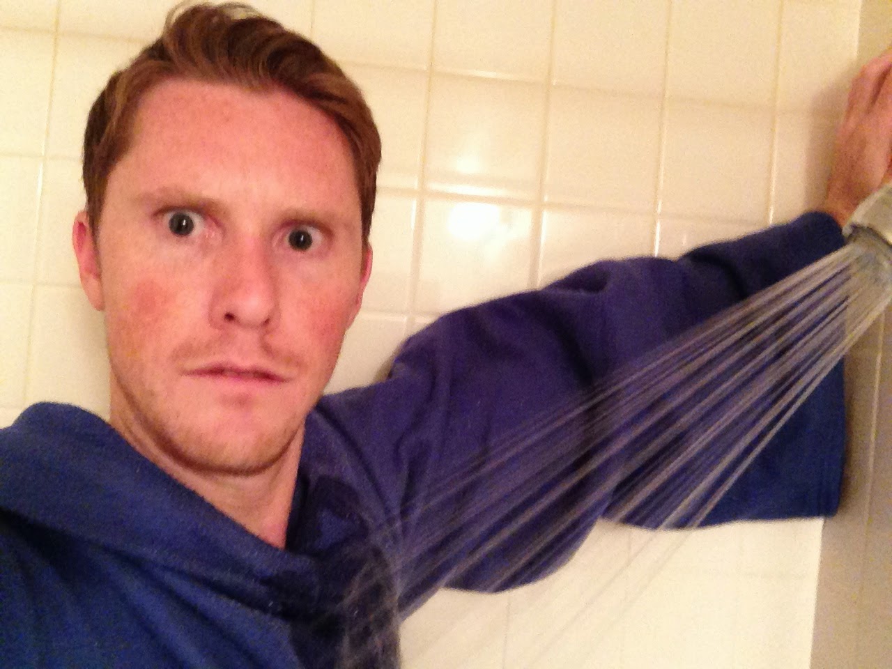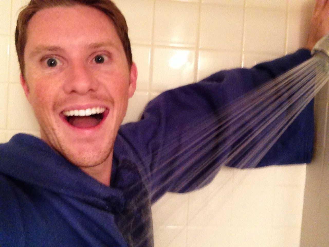 | Wondering if taking a shower in a Snuggie is actually a good idea. |