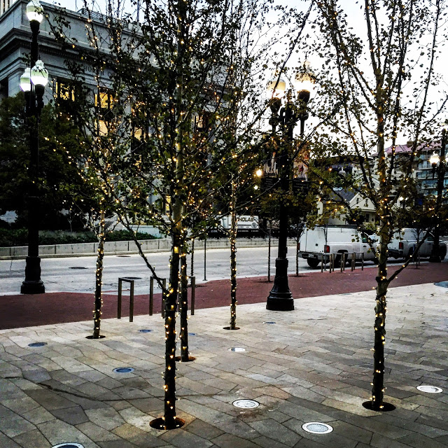 | I am not pleased that they started turning on the Christmas lights downtown before Halloween. |