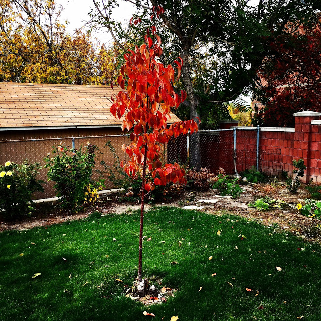 | My new trees are finally showing their fall colors. |