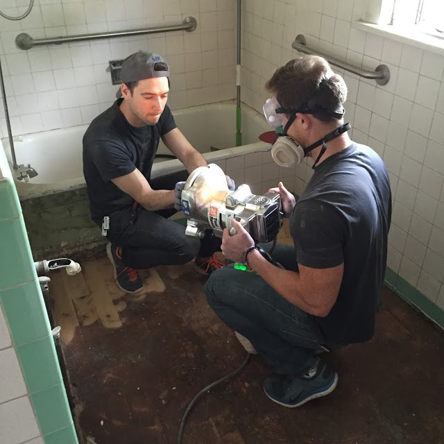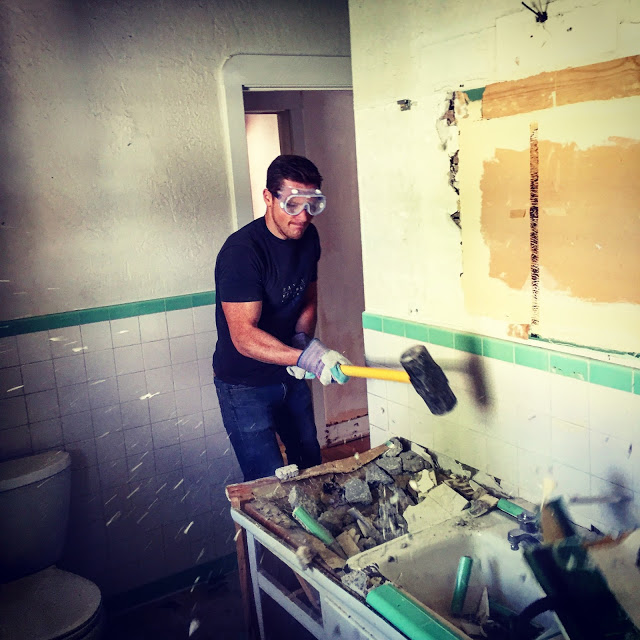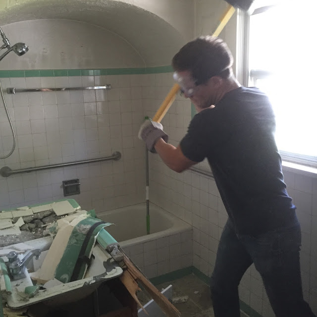 We also destroyed the world's ugliest bathroom. And Adam provided photographic proof that I performed manual labor.