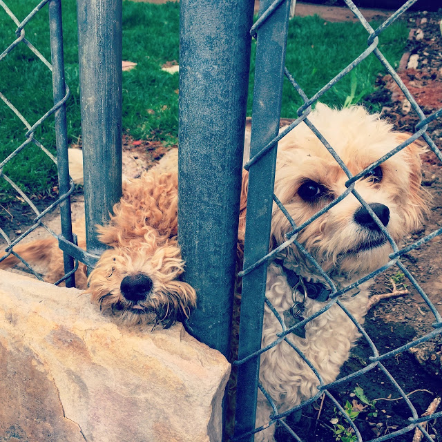 And the puppies had to stay in the backyard. They never moved from this spot for two full days: