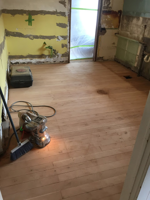 Matt, Adam, and I spent a good amount of time at the place, cleaning it out, sanding down floors, and removing wallpaper. Matt and I worked in the kitchen for several hours on Saturday morning and turned this: