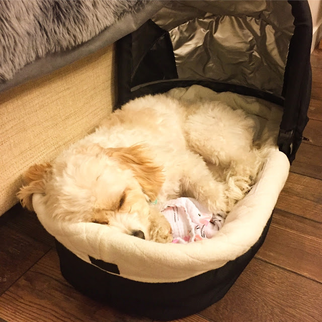 | Mr. Pants climbed into this empty baby carrier to take a nap, Adam took a picture, and the whole world exploded. |