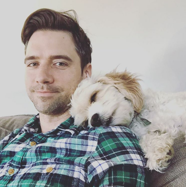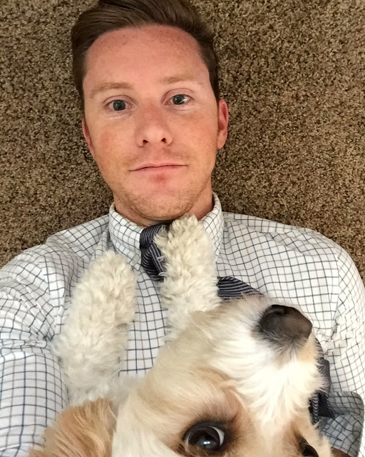 | I think I forgot to share this photo from a few weeks ago when Mr. Pants saw Matt working, walked over to him, and took a nap on his shoulder. |