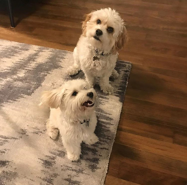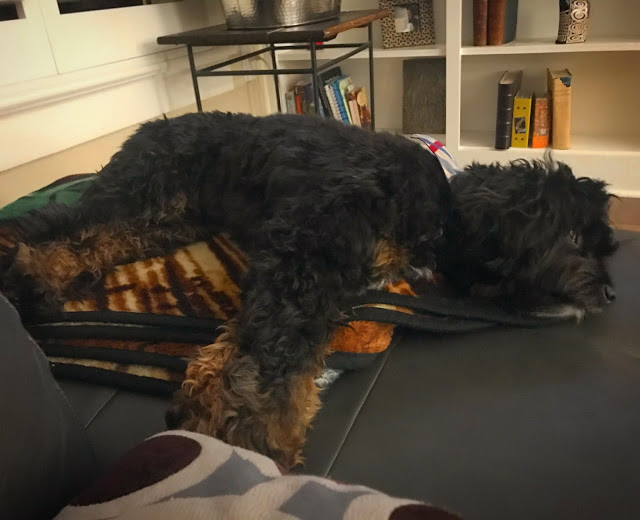 I have a work thing out of town tomorrow so I dropped Duncan off at Matt's house this afternoon. Ollie was taking his 9-hour nap on Matt's bed so he didn't bother to come to the door to greet us. Duncan searched the house for about 20 seconds before finding him, taking a flying leap onto the bed, and landing right on Ollie's head.