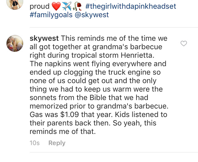 Not to get all Oprah on you, but my favorite thing in the entire world is that people think Skylar is SkyWest (the airline) on Instagram because his handle is @skywest.