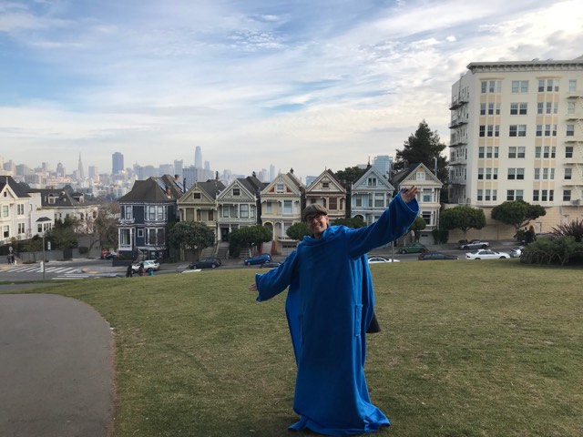 As you know, because you've been unable to think of anything else since, several months ago I started Strangerhood of the Traveling Snuggie. Eleventy hundred of you emailed me your personal information and asked to be added to the list, so after stealing all of your identities and running up a lot of debt in your names to continue to build my Pogs empire, I sent a blue Snuggie off on a great journey.