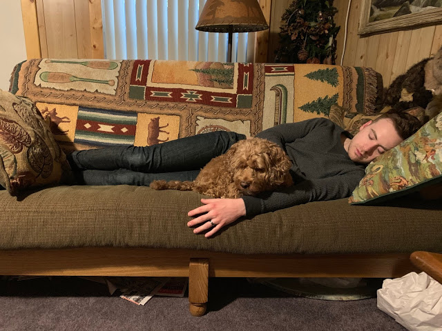 I walked out of the bedroom and found princess Skylar sleeping like a cherubim who has never experienced discomfort. I poked his face and snapped at him, "you shall be on dog duty forevermore."
