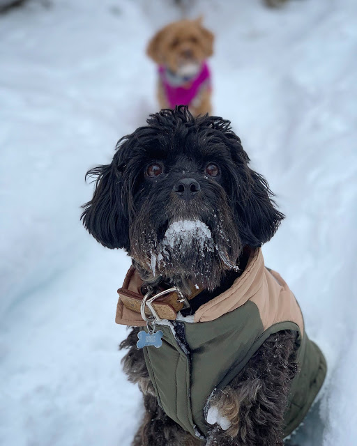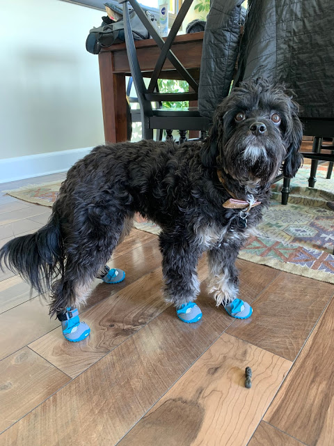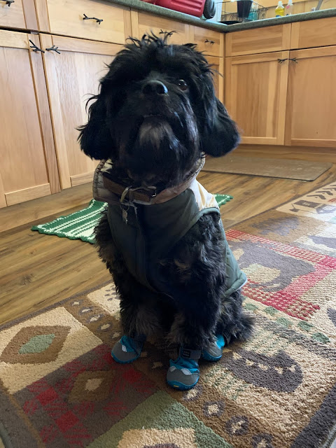 We brought our dogs to the cabin, mostly so we could force Duncan to wear doggy shoes made for the snow.
