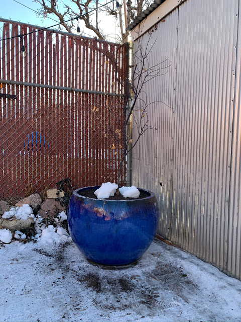 | Yes, it's February. No, that will not stop us from planting trees in giant pots. Yes, this was very cold and difficult to do. |