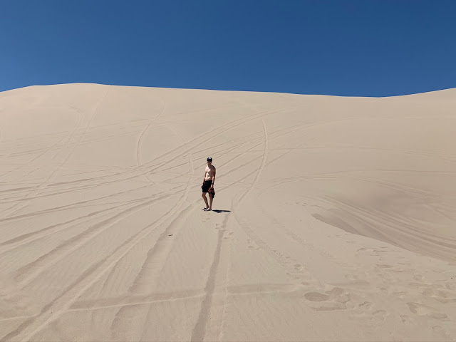 My parents had told us about a semi-ghost town a little over an hour from our house and off in the desert. The town is called Eureka. It's nestled in some small mountains and just on the backside of some breathtaking sand dunes. I guess it was an old pioneer-era mining town, and there are a few true ghost towns (totally uninhabited ruins) within 15 or 20 minutes of the place.
