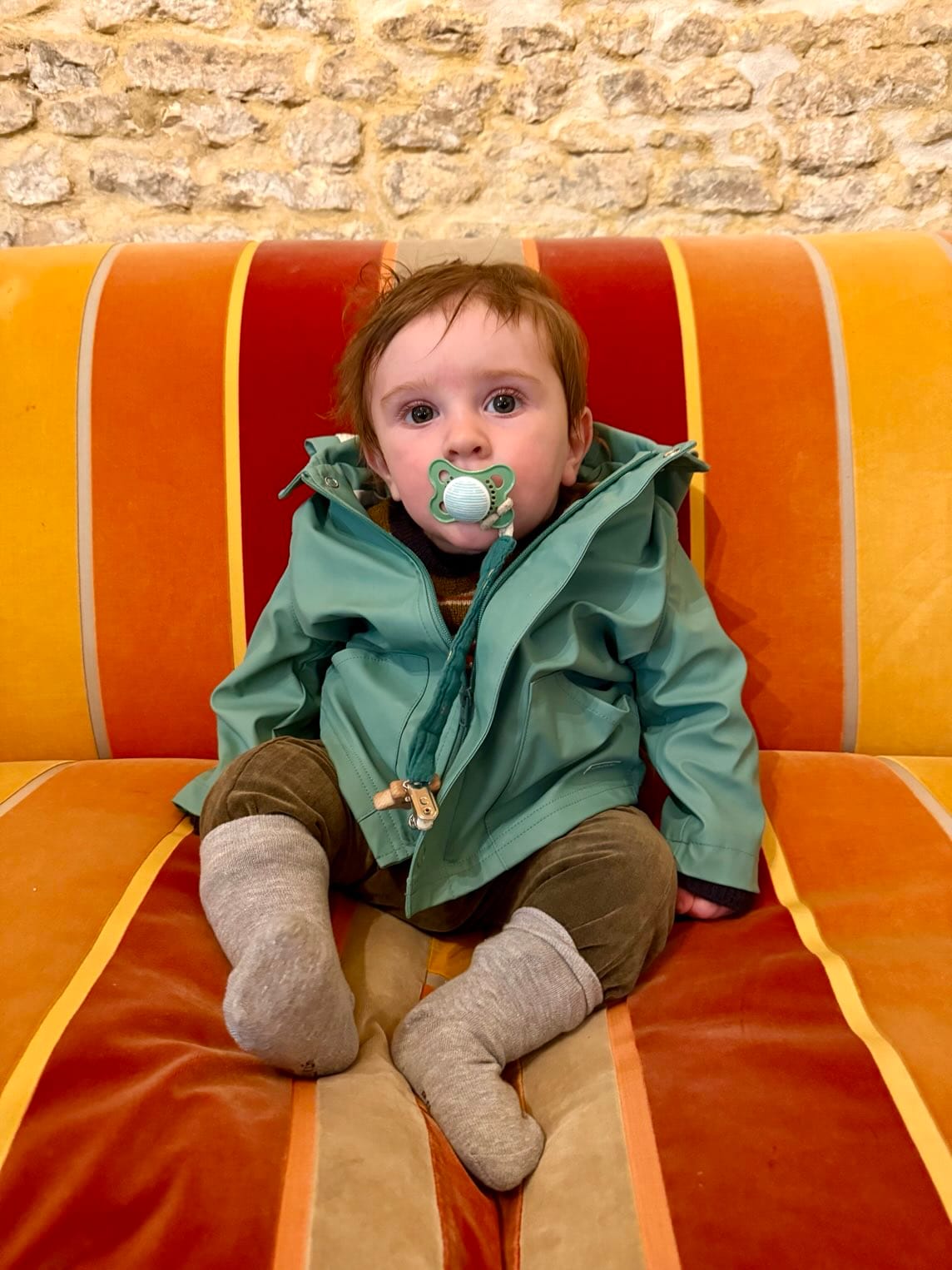 We arrived in Normandy on West's first birthday and Gabby had decorated the guest house where we stayed with balloons and toys and a wrapped box with a French baby rain jacket in it that is so cute God makes it rain wherever we are now because she wants to see West wear it.