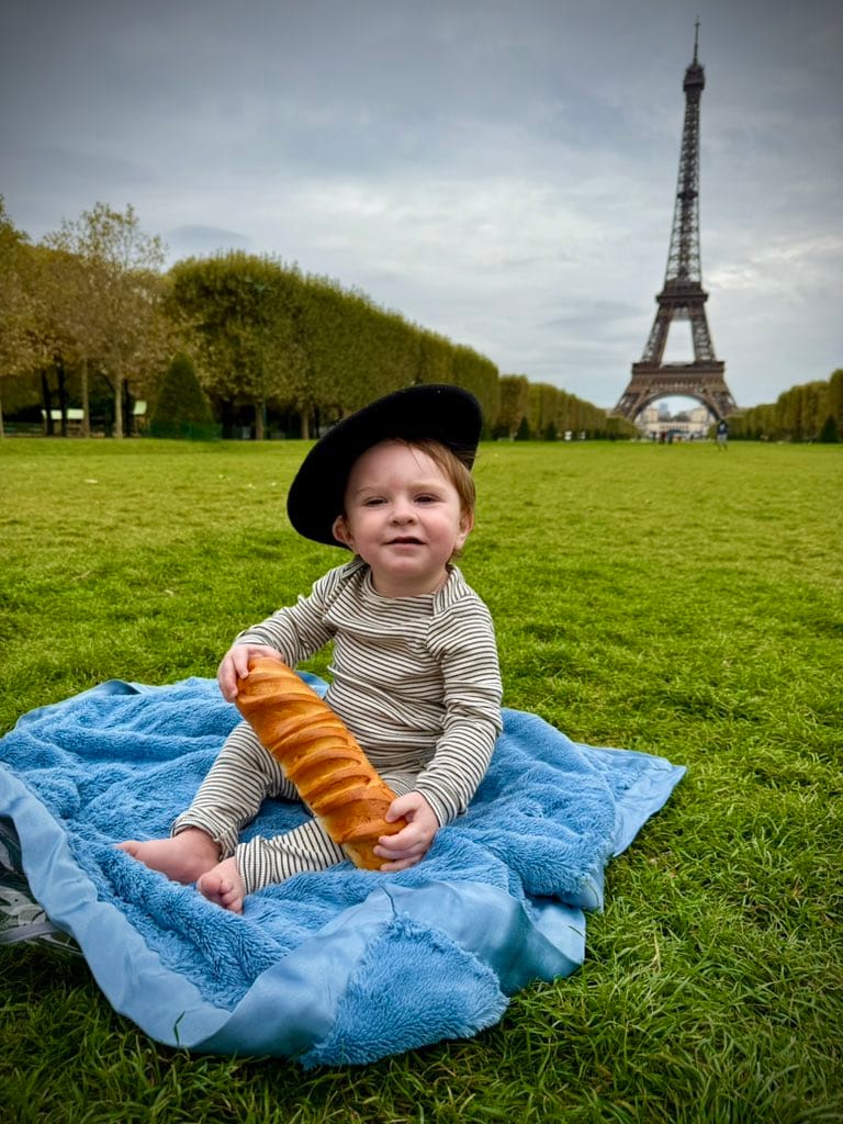 On our last full day in Paris, we donned our child in French apparel, found the perfect spot, and made this happen.