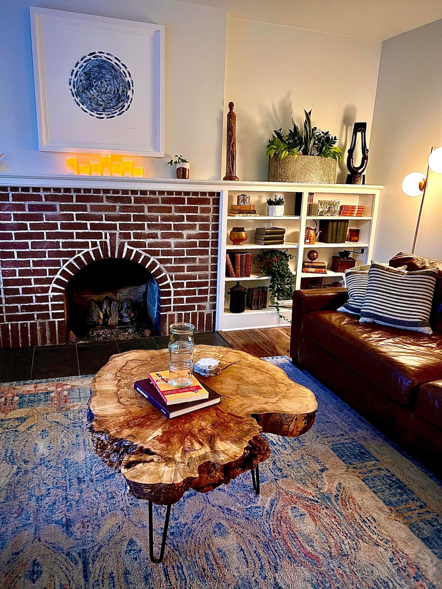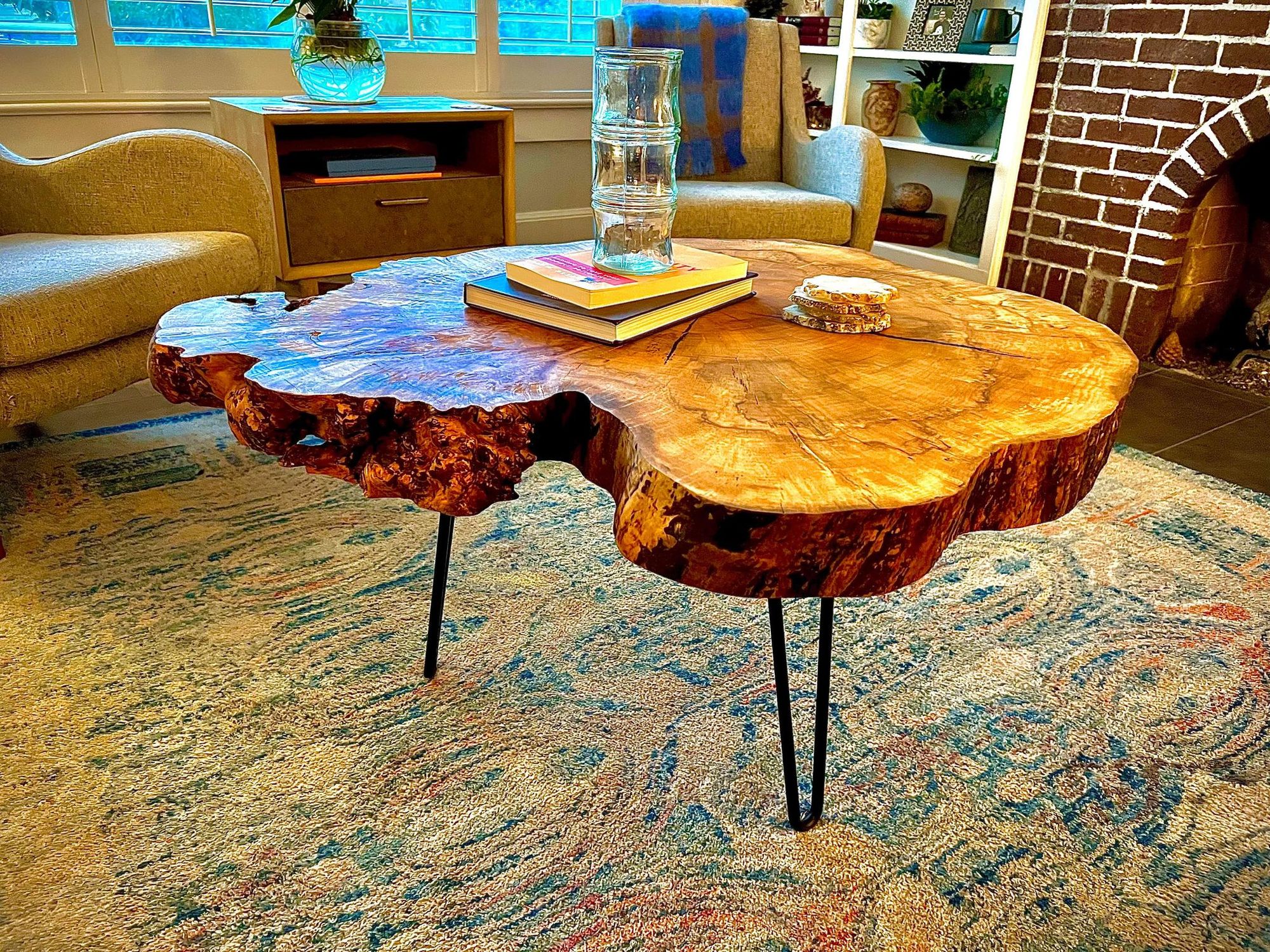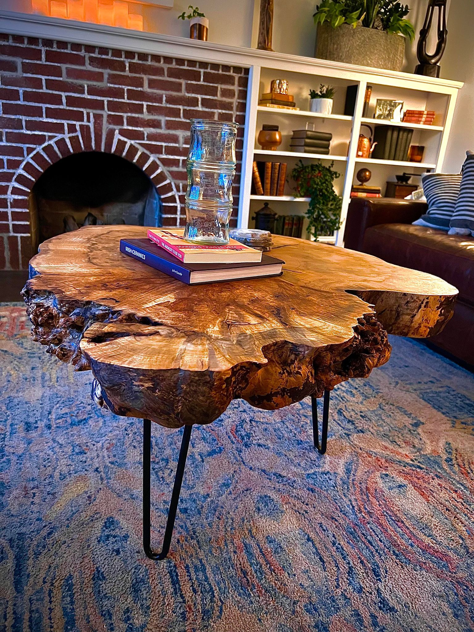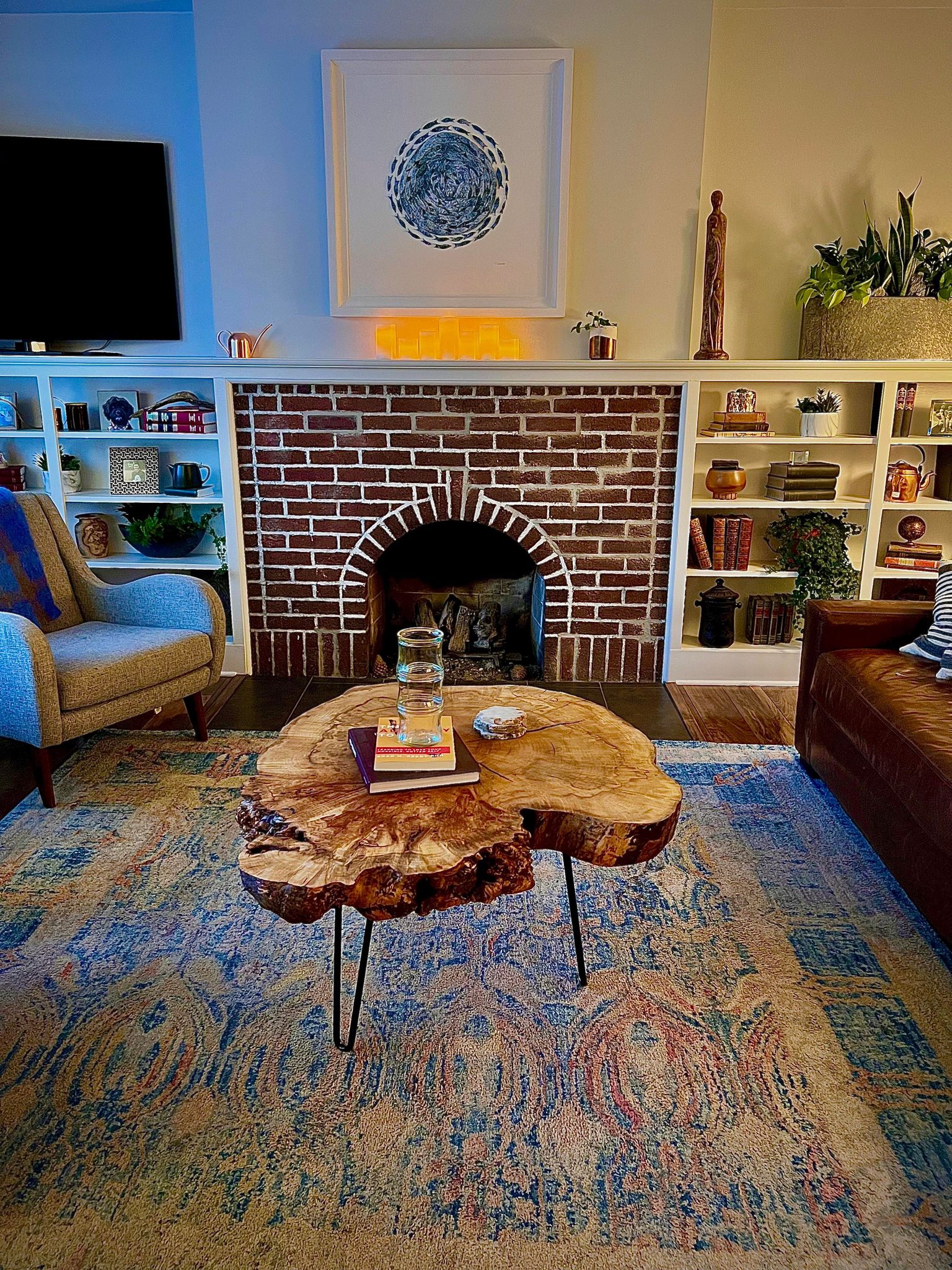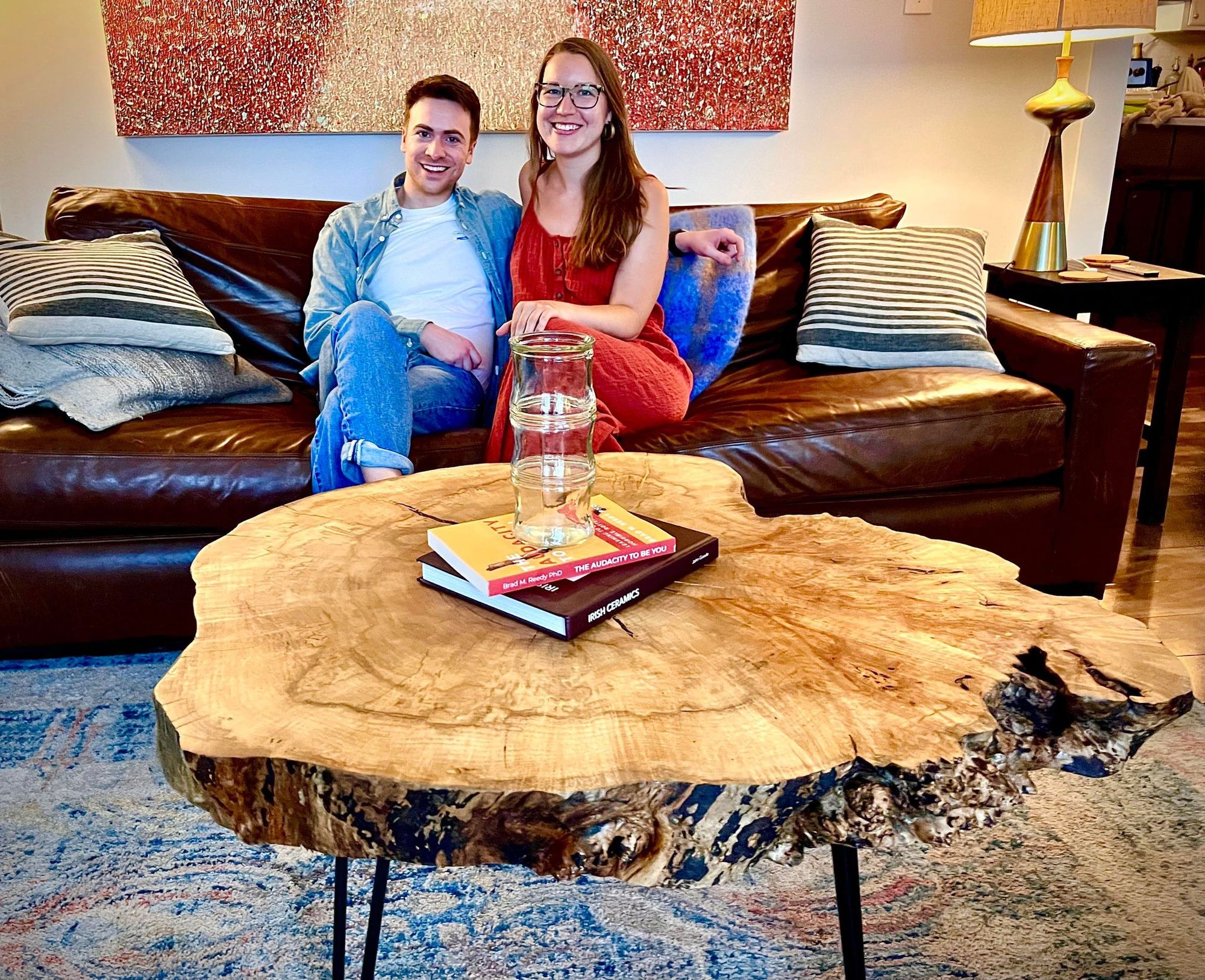 When Skylar visited Emma a couple of years ago in Oakland, the two stumbled upon a shop where a man was selling raw materials to build furniture. Skylar found this beautiful piece of wood, cut horizontally from a tree, and he very much wanted to buy it and figure out how to turn it into a coffee table.