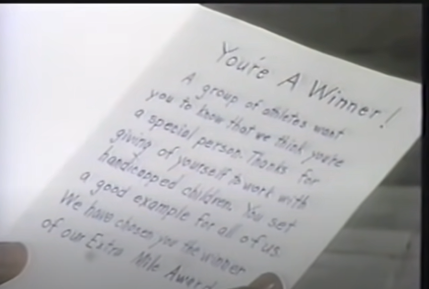Marybeth goes on to explain she volunteers to help “handicapped children every day after school and all day on Saturday.”