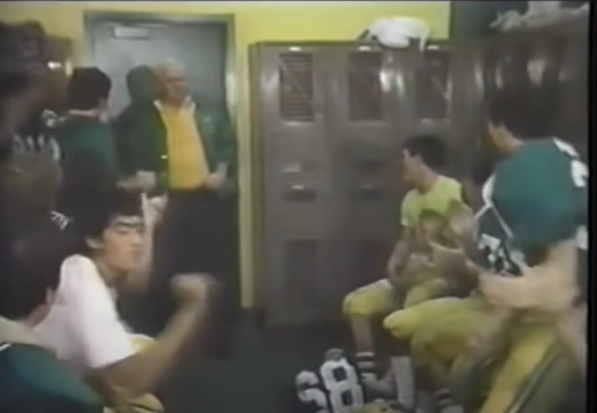 The coach gives a speech about how proud they should be of themselves for winning and that they are only one game away from “an undefeated championship.” ??? This speech is long. AND IT’S NOT RELEVANT TO THE FILM. WHY ARE THEY MAKING US WATCH ALL OF THIS.