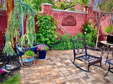 We collected colorful mosaic pots and wind chimes. We hung wall art and humming bird feeders.